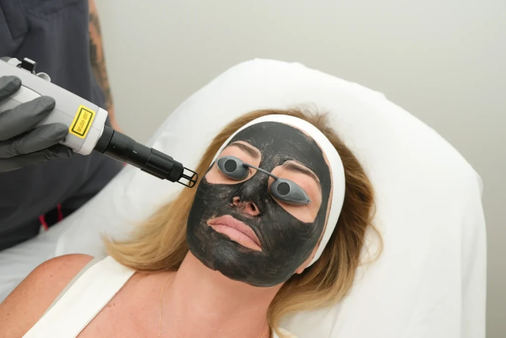 During the procedure, a thin layer of carbon solution is applied evenly to the skin and allowed to settle into the pores. Laser energy is then passed over the treatment area, targeting the carbon particles. As the carbon absorbs the laser energy, it breaks apart, taking surface debris and impurities with it.